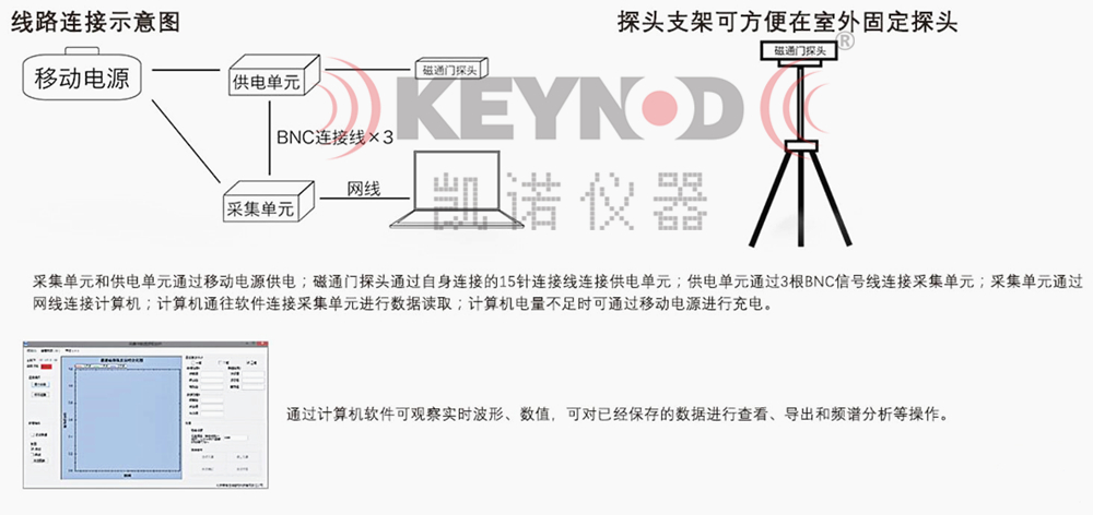 高精度便携式磁通门计测量套件CH-530供电与数据采集: