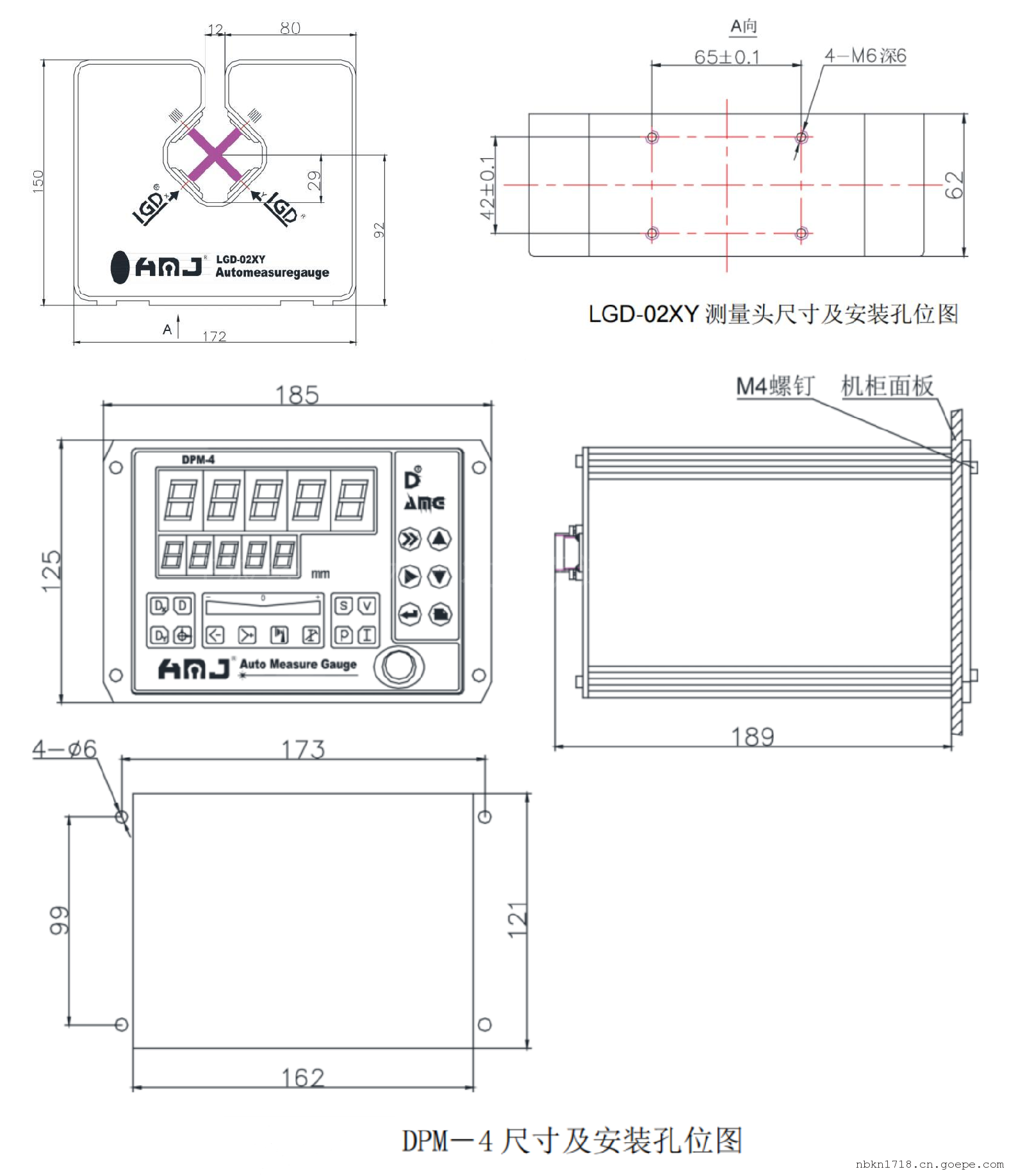 (一)仪器安装(图为 LGD-02XY 的测量头与显示控制器外形与安装孔位尺寸)