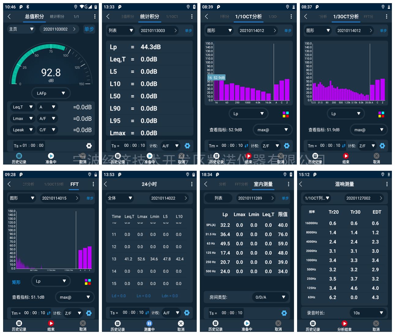 积分、统计分析、24小时自动监测、1/1和1/3OCT分析、FFT分析、室内噪声、混响测量
