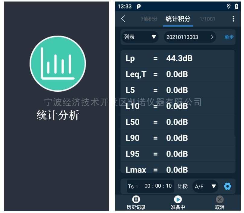 统计分析功能测量指标:Lp、Leq,T、L5、L10、L50、L90、L95、Lmax、Lmin、SEL、SD,支持10个附加指标