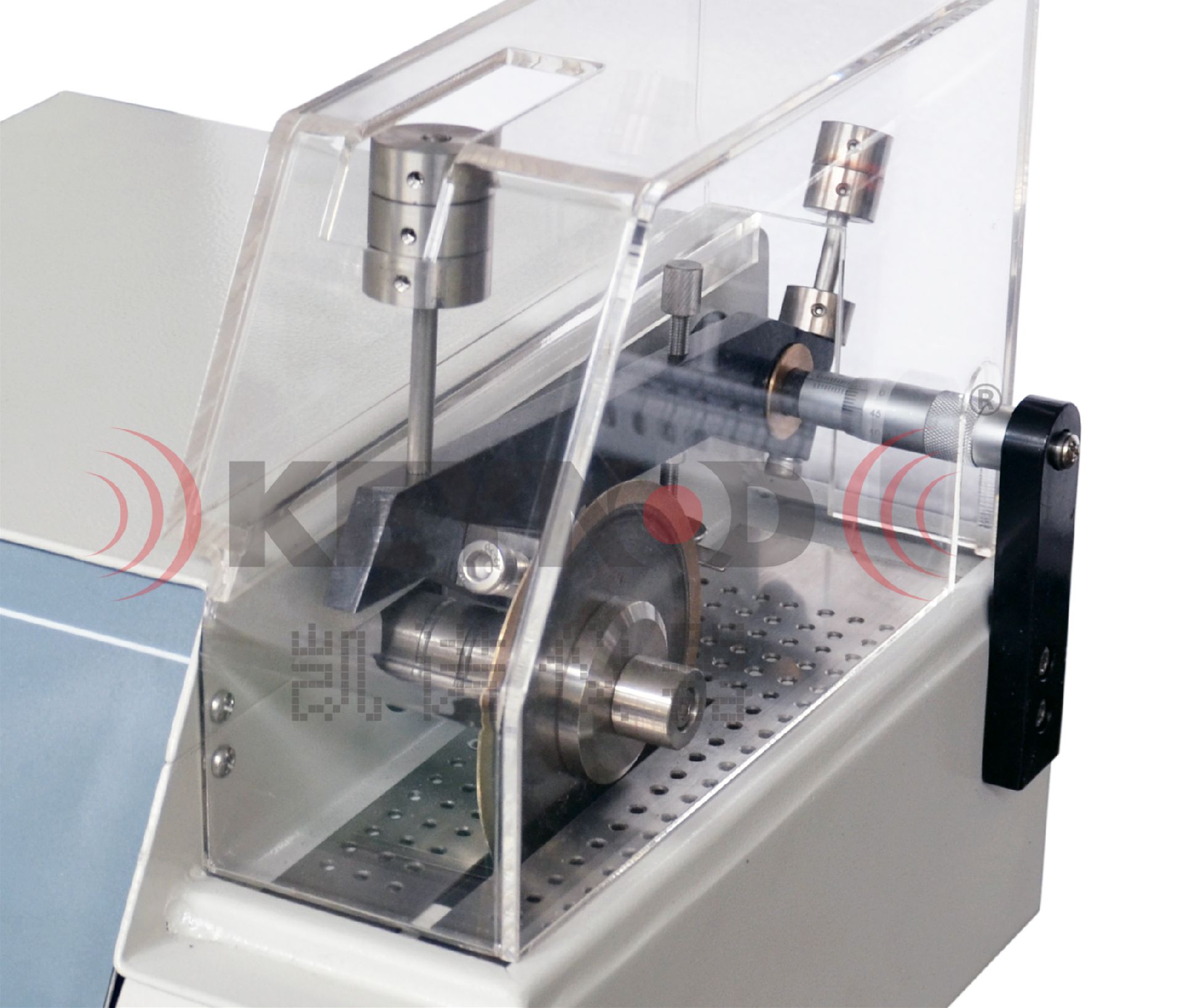 上海金相JMQ-12低速精密切割机采用砝码块负荷恒定切割力自动切割,切割完成后自动停止;采用千分尺装置,可调整试样切割的厚薄,做到精密切割,可作为透射电镜的配套制样设备。
