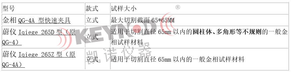 QG-4A金相多功能快速夹具切割机与蔚仪多功能切割机对比表: