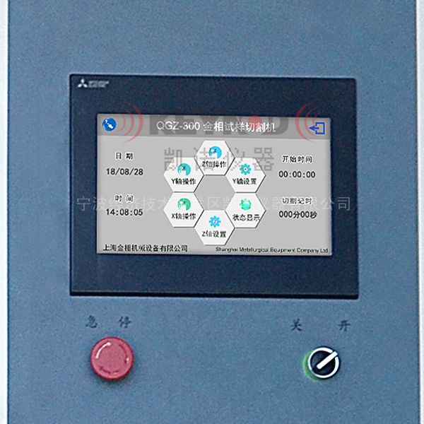 QGZ-100/120/200/300大型自动切割机整机结构坚固、设计合理,变频电机直连切割片,提供了电动机与切割片之间的动力传递,确保切割效率,并采用机电分离结构,有效保护电气安全,维护保养方便,使用寿命更长;采用施耐德电气和三菱软件,X,Y,Z方向自动控制,智能切割可根据材料硬度变换进刀量,达到快速切割效果,切割速度变频控制,具有非常高的可靠性和控制能力;滑动门和铰链门结构能更加方便地将大型工件装载在合适的位置,可以从上方、前方、左侧三个方向将工件送入切割室;切割室采用全封闭式结构,运作中安全锁强制紧闭,安全可靠;配备防爆透明观察窗,强力排气装置,双LED灯照明,使观察更清晰;红一字光标定位,使切割更准,10寸触摸屏显示及控制,设计人性化;配备移动式磁性过滤循环水箱,切割后的试样表面光亮、平整,无烧伤,是切割大型试样的理想设备。