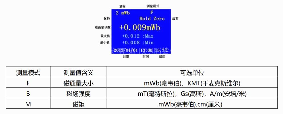 显示单位可选毫韦伯、千麦克斯韦尔、高斯、毫特斯拉