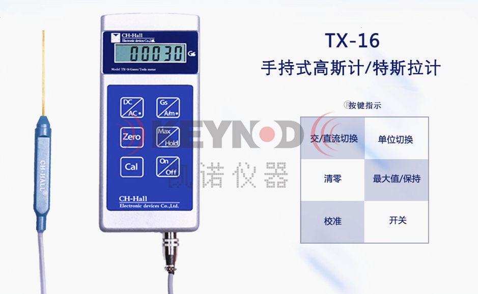 手持式高斯计TX-16是一款交直流两用的智能磁性能测试仪器,具有高刷新率,更高的显示分辨率和更高的测量重复性,稳定性,并保持全量程1Gs的高分辨力。
