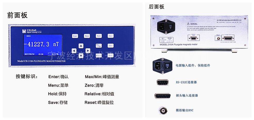 磁通门计CH-310A屏幕采用大尺寸的 VGA 显示,VGA 显示器可以同时显示每一个通道的多种不同的测量值:三维度磁场密度,温度,樶大值,樶小值,日期,时间。CH-310A磁通门计数据存储及实时数据数字输出与各通道模拟信号输出。CH-310A磁通门计的适用范围:
