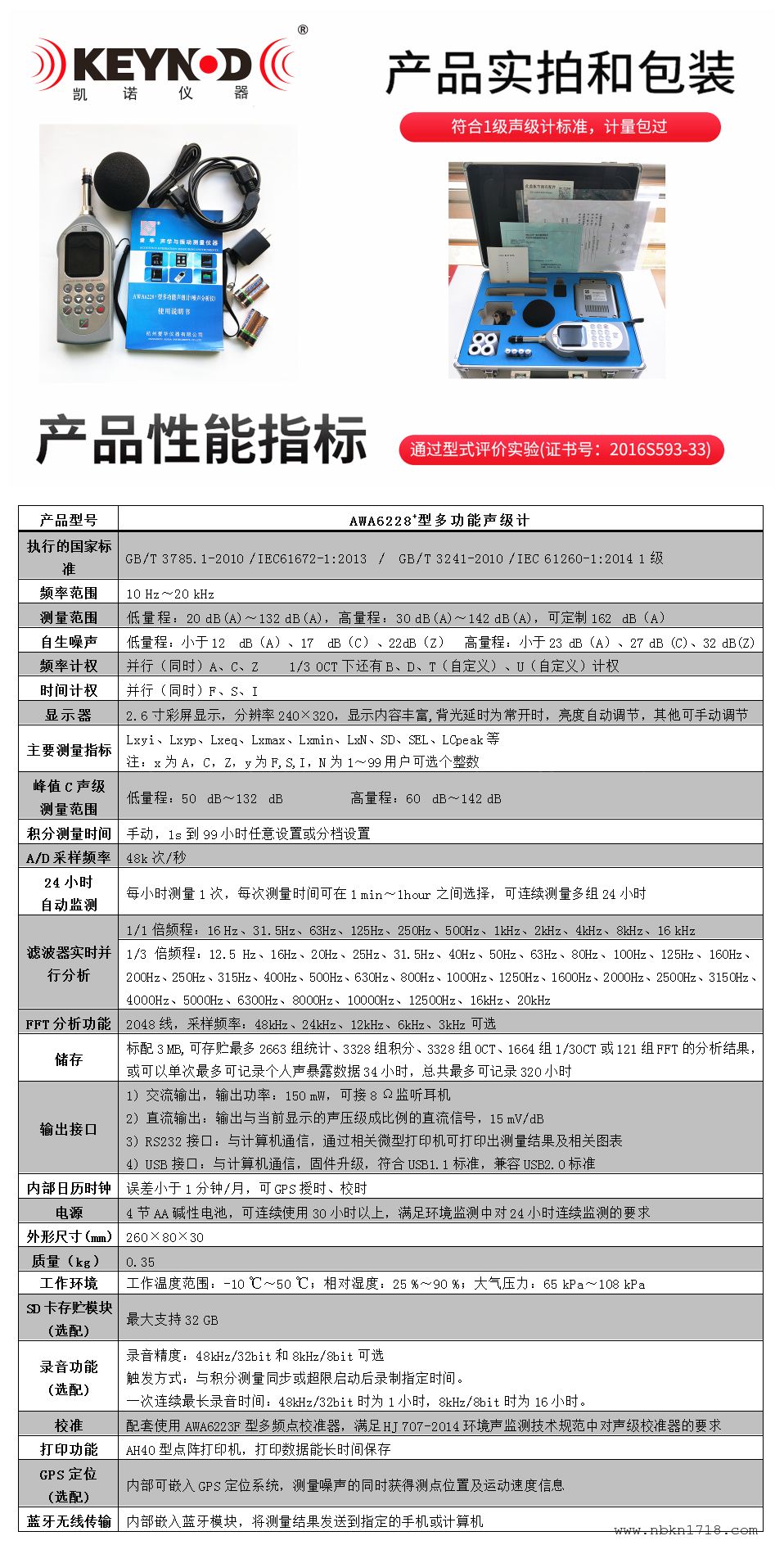 爱华AWA6228+频谱功能声级计主要配置如下: