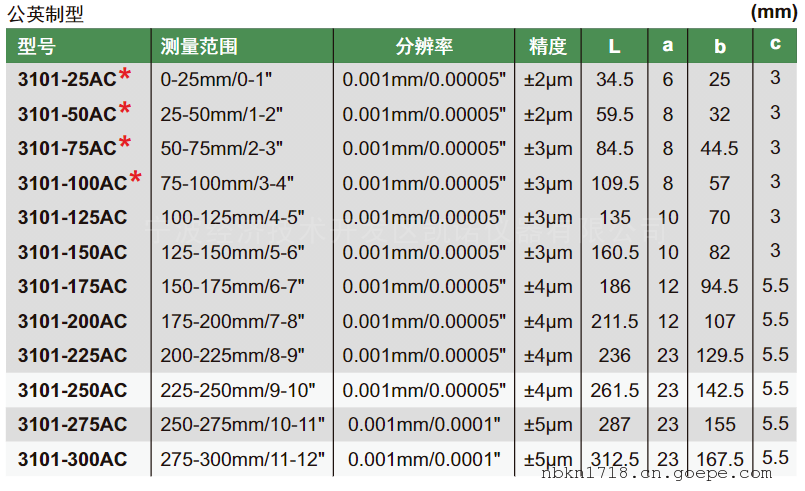 INSIZE英示3101系列防水数显外径千分尺规格参数:宁波凯诺仪器主营噪声振动检测设备和磁性能产品测试仪器,主打爱华声级计、噪声统计分析仪、声学振动测试、铁损测量仪、高斯计、磁通计,激光对中仪,金相磨抛机等全系列金相试验设备。热销产品有: