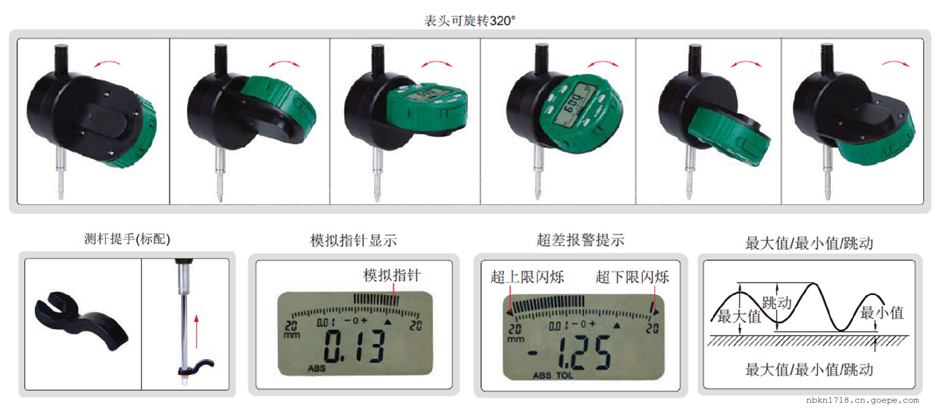 按键功能:设置公差并显示Go/No-Go,设置初始值,测量方向转换,