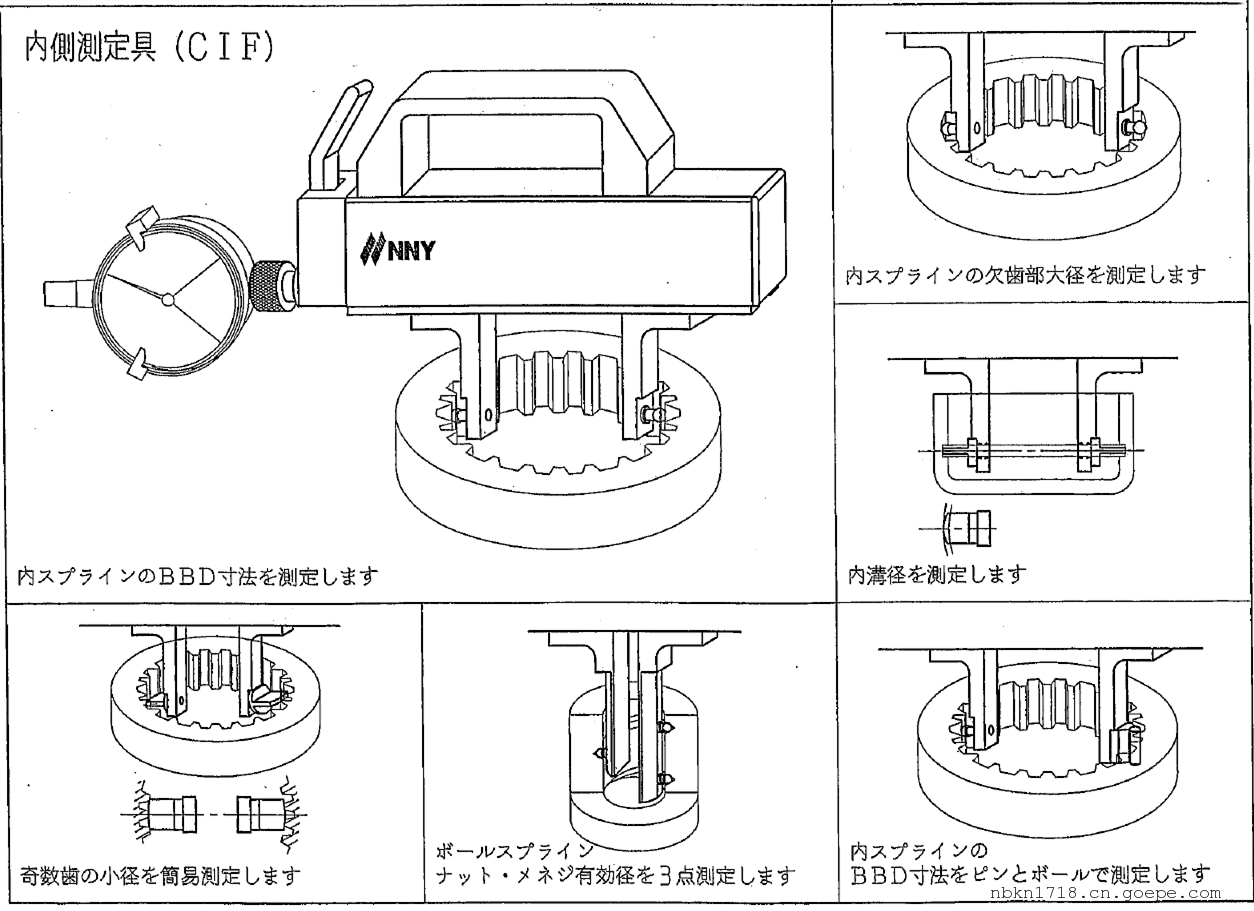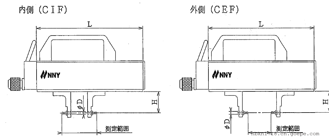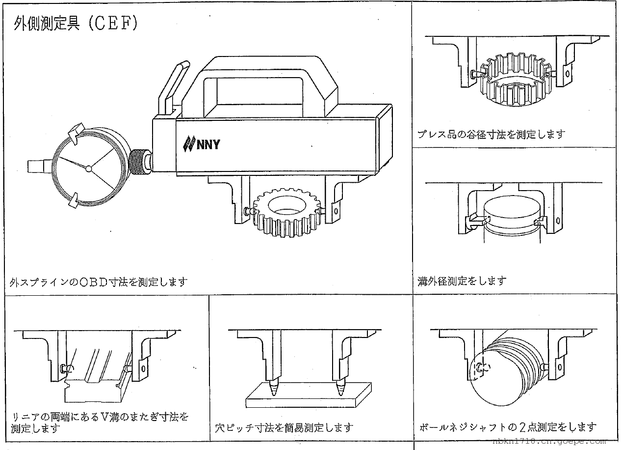 日本NNY南谷制作所NMP-CEF/CIF-150/220系列跨棒距比较测量仪,分为CEF和CIF两个类型,用于测量如外齿轮和内齿轮棒间距,测量范围0-100/170和20-130/200可选,测量深度20~60可选,测头可按要求进行定制。