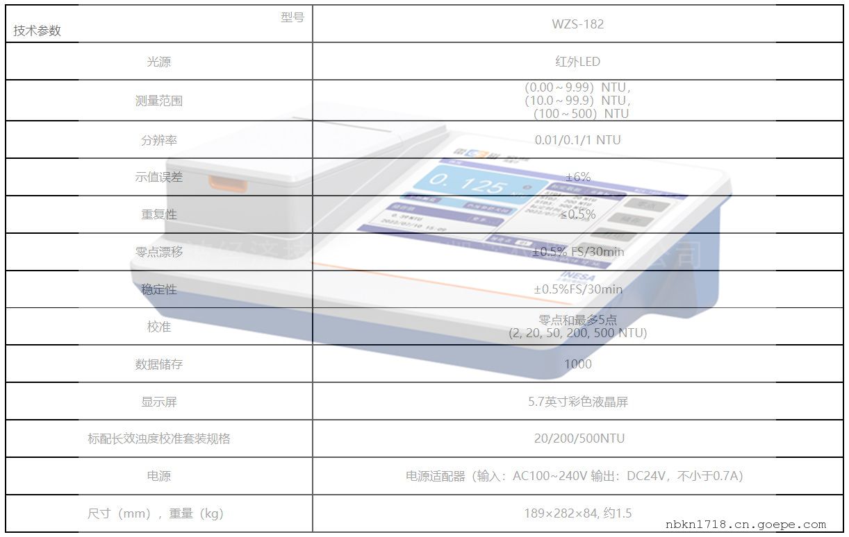WZS-182型雷磁新款LED光源台式浊度计技术参数: