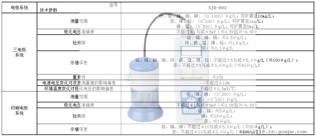 新款便携式重金属离子分析仪雷磁SJB-802型技术参数: