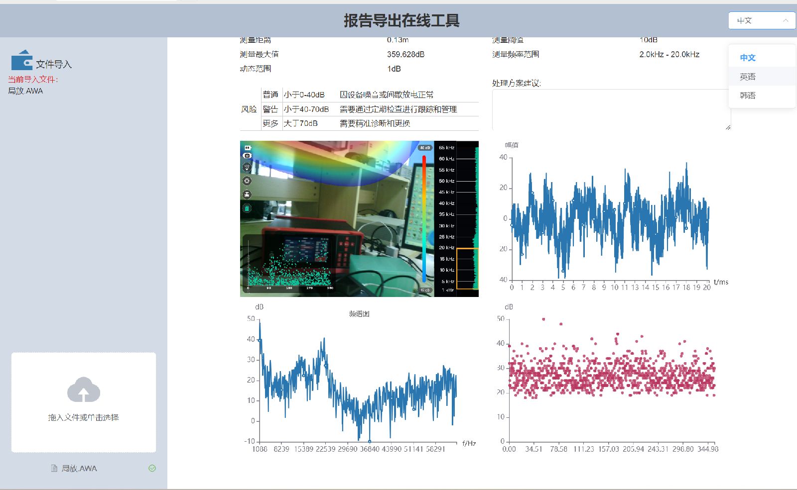内置声源识别算法,支持实时分析异常声源类型(如泄漏、放电、机械磨损)。