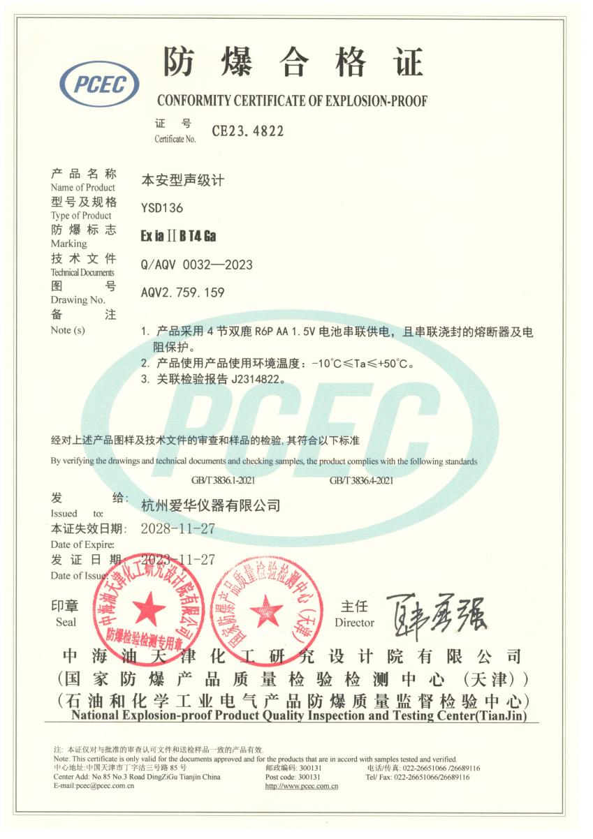 杭州爱华新款矿用本安型声级计功能声级计YSD136型,是一种模块化、多功能声级计。其安全性能符合GB/T 3836.1、GB/T 3836.4的有关规定。执行Q/AQV 0032—2023企业标准,声级计符合GB/T 3785.1—2023和IEC 61672-1:2013标准对1级声级计的要求,滤波器符合GB/T 3241—2010和IEC 61260-1:2014标准对1级滤波器的要求,个人声暴露计符合GB/T 15952—2010和IEC 61252:2017的要求,对射频场敏感度属X类,采用了先进的数字检波技术,使得仪器的稳定性、可靠性大大提高。而且动态范围大、操作简单、用途广。外壳采用C4120 NC防静电材料,外形美观,重量轻,便于携带;电池供电,功耗小。仪器具有大容量存贮、录音、U盘等功能。 矿用本安型声级计爱华YSD136型适用领域:
